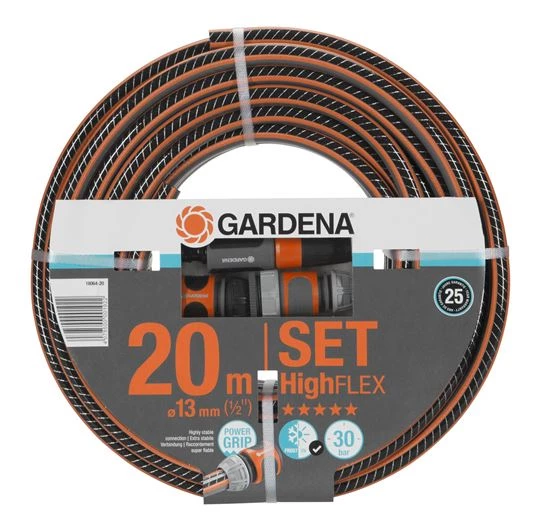- Cet ensemble comprend un tuyau GARDENA Comfort HighFLEX et tous les accessoires d’origine GARDENA nécessaires.