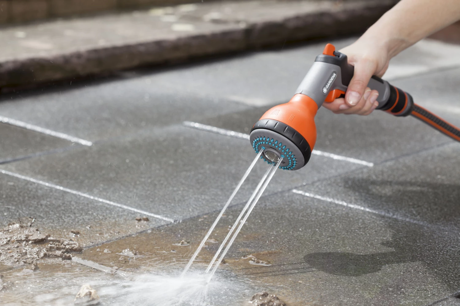 - Pour l’arrosage des surfaces, choisissez le jet balai, pour les plantes en pot le jet perlateur et pour un nettoyage efficace, utilisez le jet plein à 9 points.