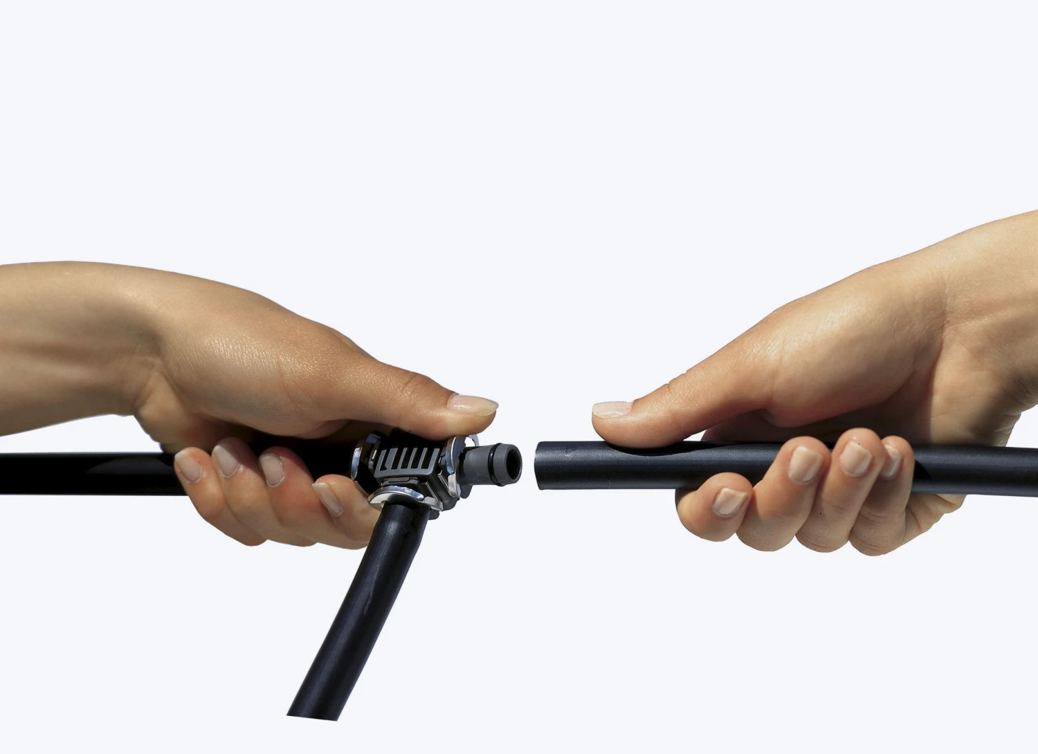 - Avec la pièce en T GARDENA faisant partie du système de microgoutte GARDENA, il est possible de dériver le tuyau d’alimentation.