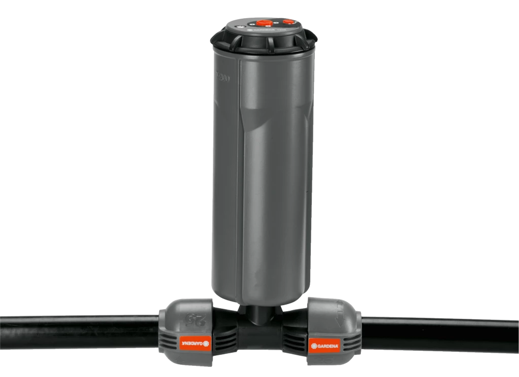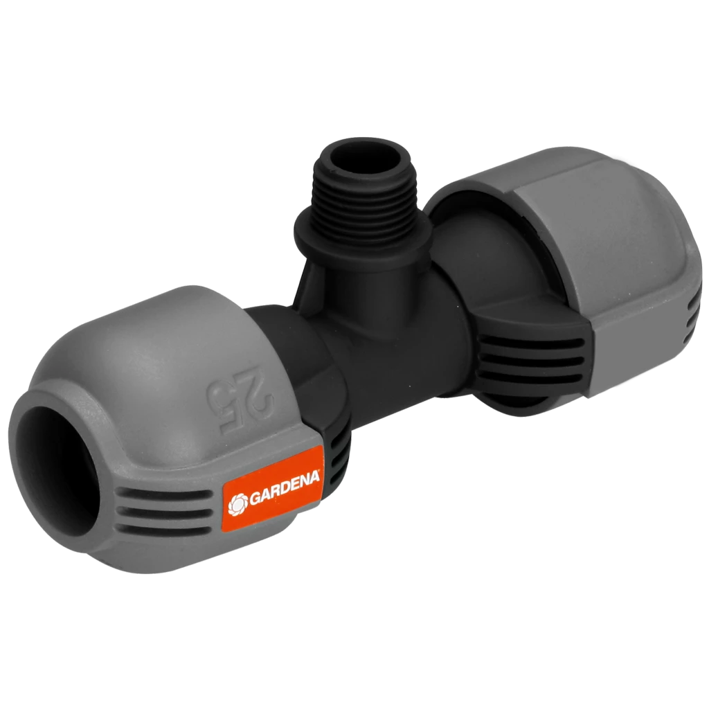- Dans le cadre du système d’arrosage GARDENA, le raccord en T GARDENA 25 mm x 1/2 filetage mâle permet d’installer le sprinkler encastré S 80 (réf. 1569-26) et les sprinklers à turbine encastrés T 100 et T 200 (réf. 8201-29 et 8203-29) dans la longueur du tuyau.